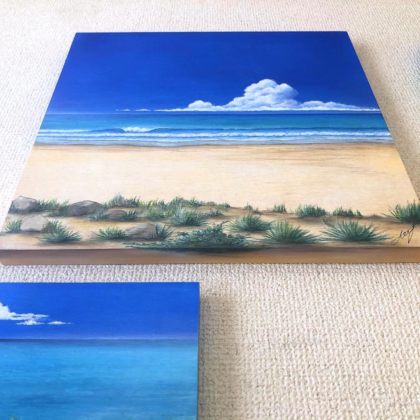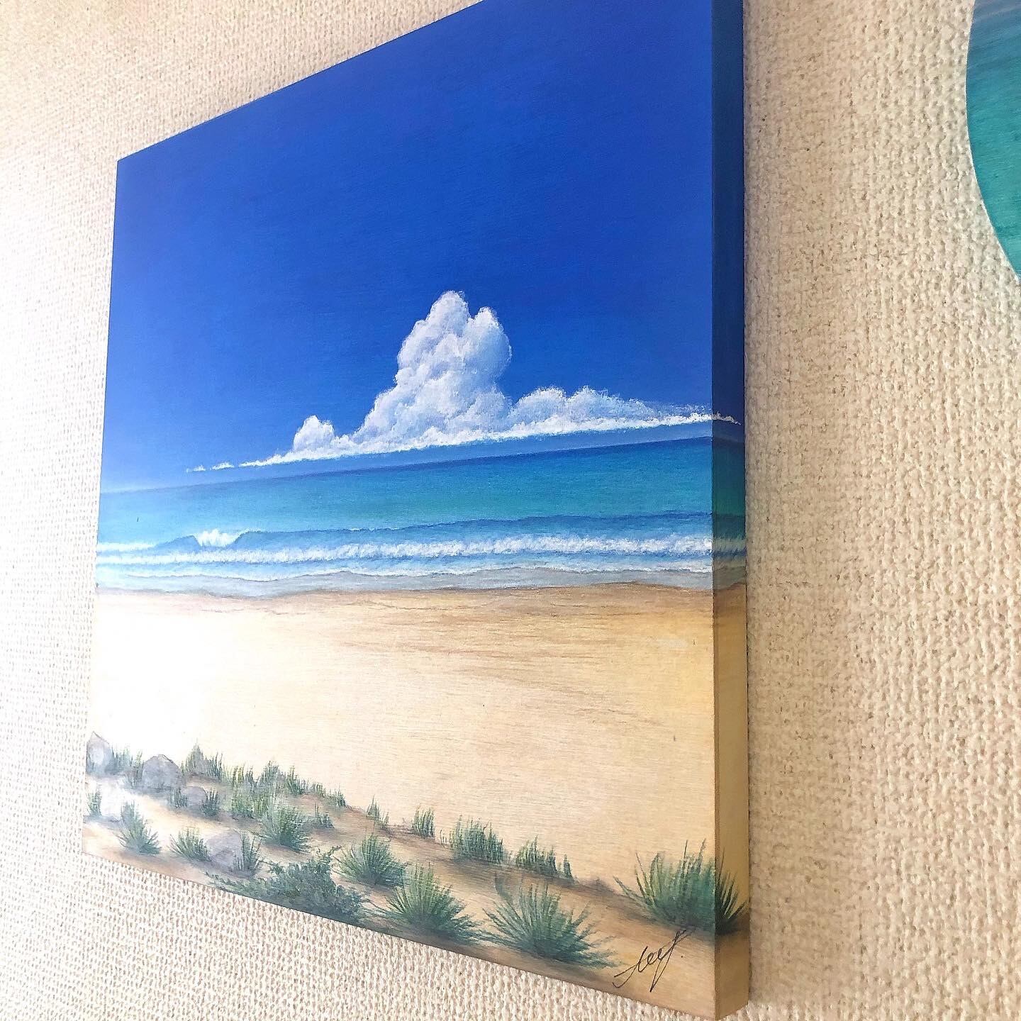 サイズ334×334の木製パネルに描いています。